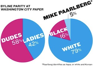 Based on the equally-dismal racial byline disparity, perhaps a #PromotePeopleOfColor campaign is also in order? To our knowledge, this is the first time an alt-weekly has published a survey of this sort, but feel free to